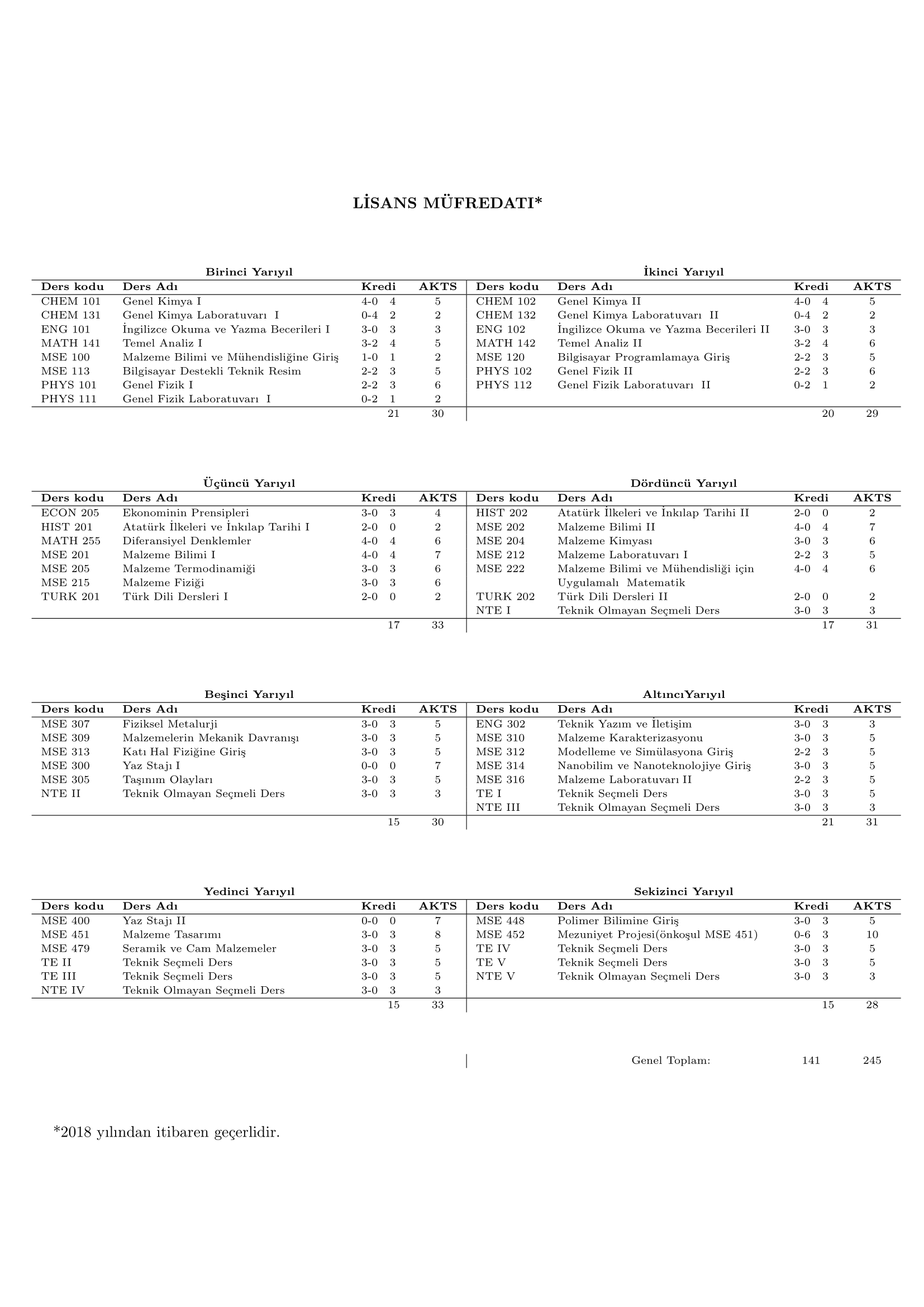 Lisans Müfredatı (2018)